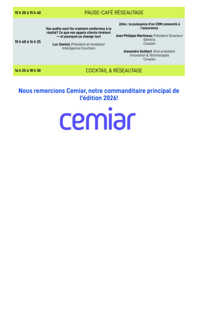 Ne manquez pas cet événement technologique unique au Québec, imaginé par les courtiers, pour les courtiers – une occasion exceptionnelle de découvrir les outils qui façonneront l’avenir de votre secteur.